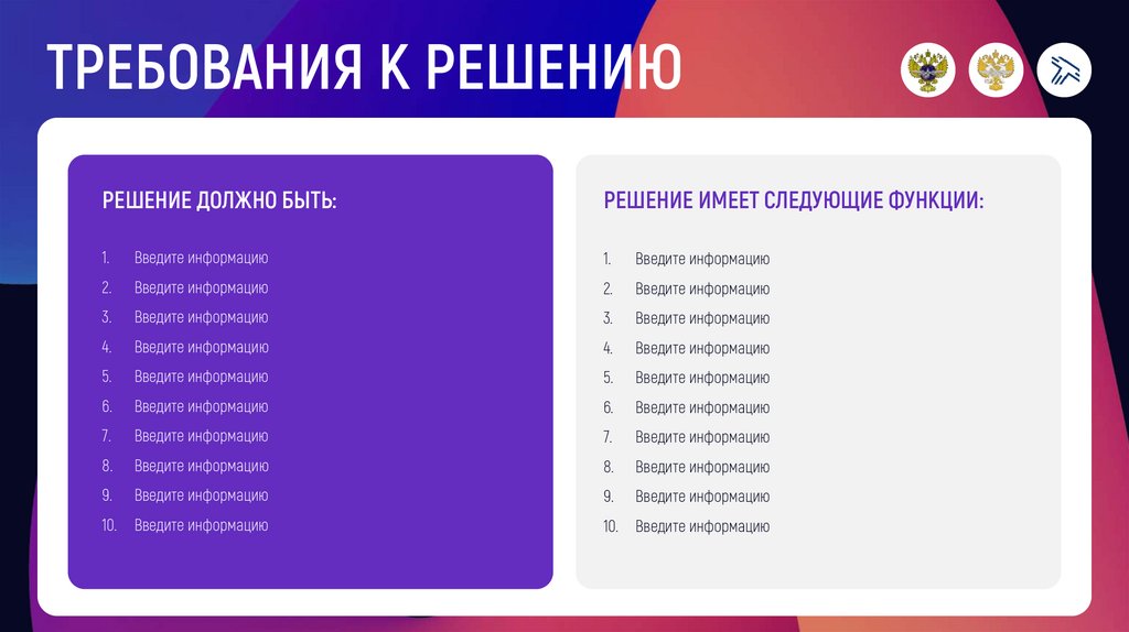 Например: решение должно быть удобным, чтобы пользователи ….; решение должна