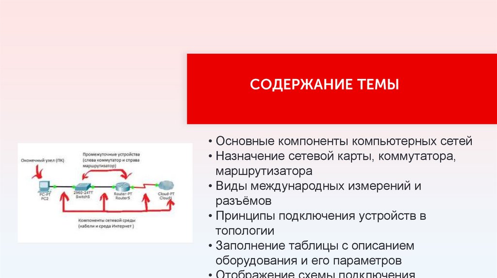 СОДЕРЖАНИЕ ТЕМЫ• Основные компоненты компьютерных сетей