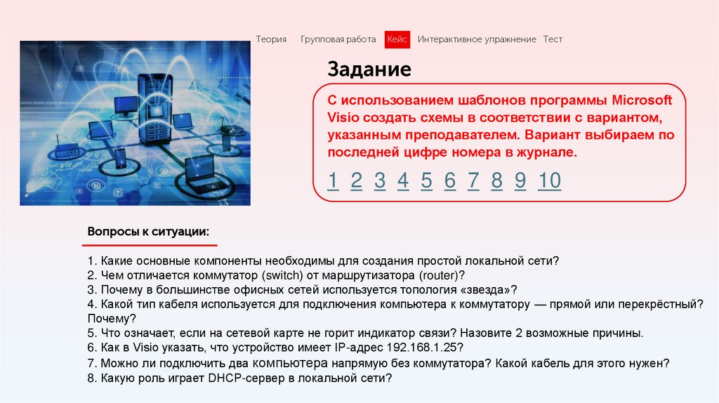 4. Какой тип кабеля используется для подключения компьютера к коммутатору — прямой или перекрёстный?