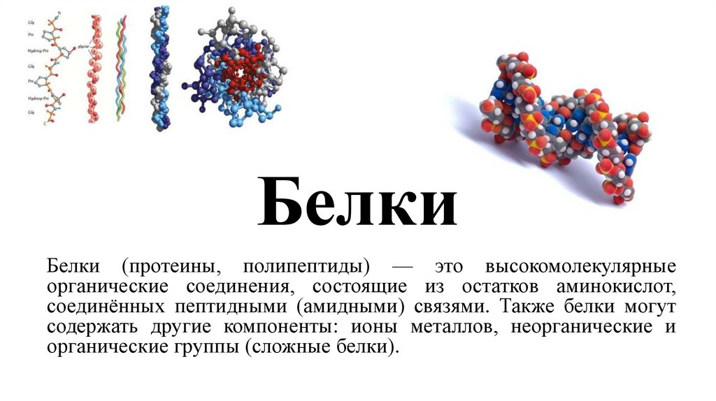 Белки (протеины, полипептиды) — это высокомолекулярныеорганические соединения, состоящие из остатков аминокислот,