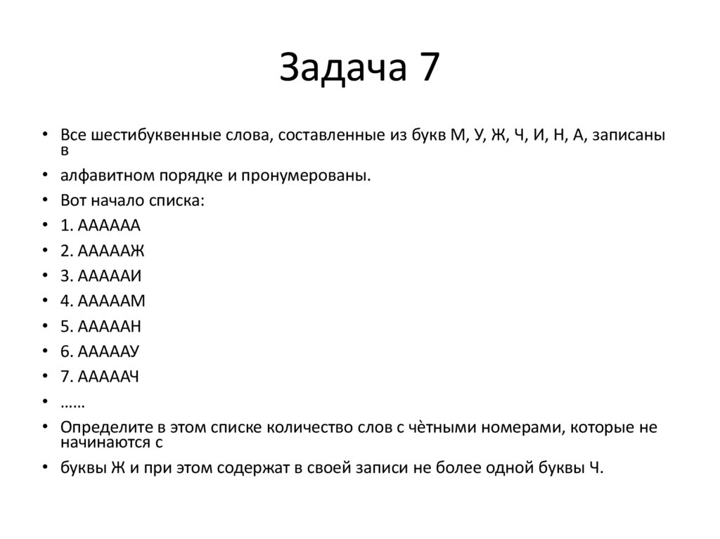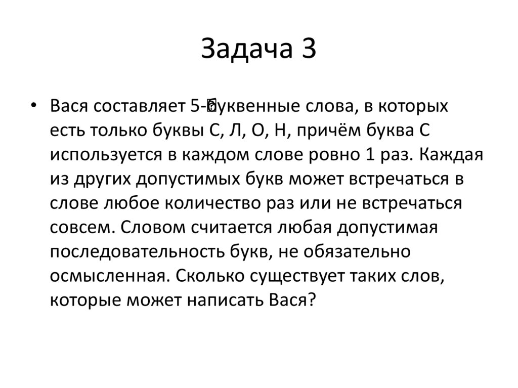 Задача 12• Вася составляет 6-буквенные слова, в которых