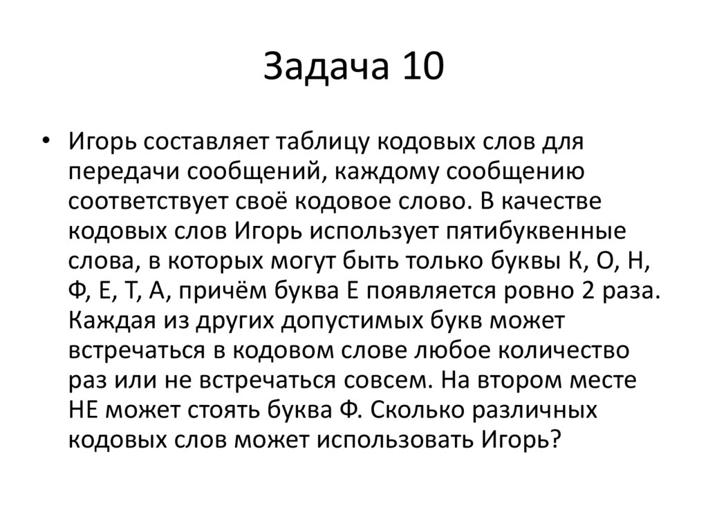 Задача 19• Игорь составляет таблицу кодовых слов для