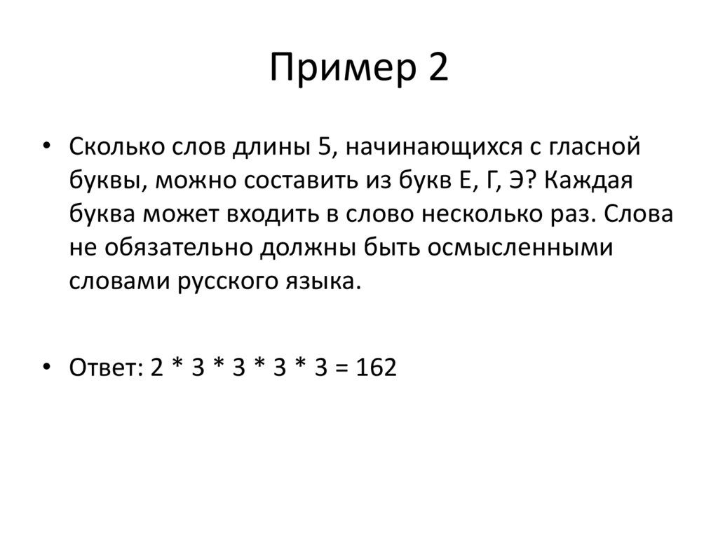 Пример 2• Сколько слов длины 5, начинающихся с гласной