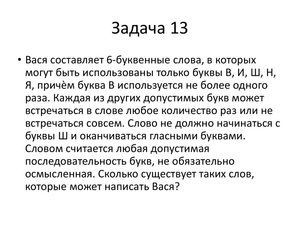 Задача 13• Вася составляет 6-буквенные слова, в которых