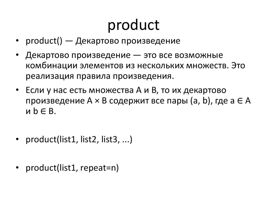 произведение A × B содержит все пары (a, b), где a ∈ A