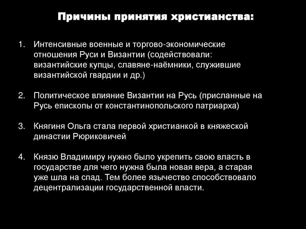 • Ослабление Византии вследствие ограждения её от северных