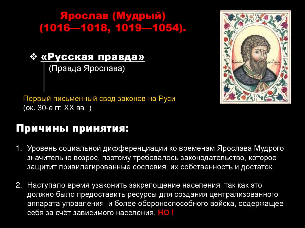 1. Уровень социальной дифференциации ко временам Ярослава Мудрого