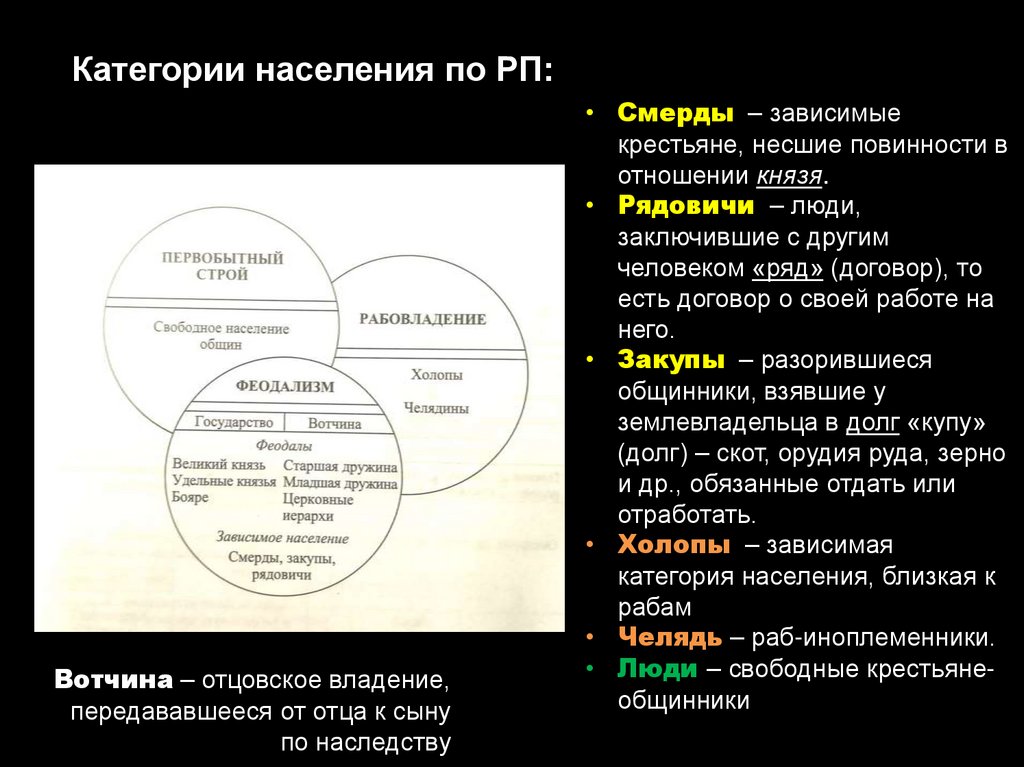 Категории населения по РП:Вотчина – отцовское владение,