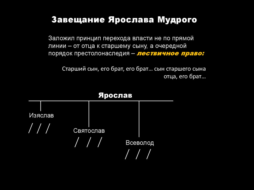 Завещание Ярослава МудрогоЗаложил принцип перехода власти не по прямой