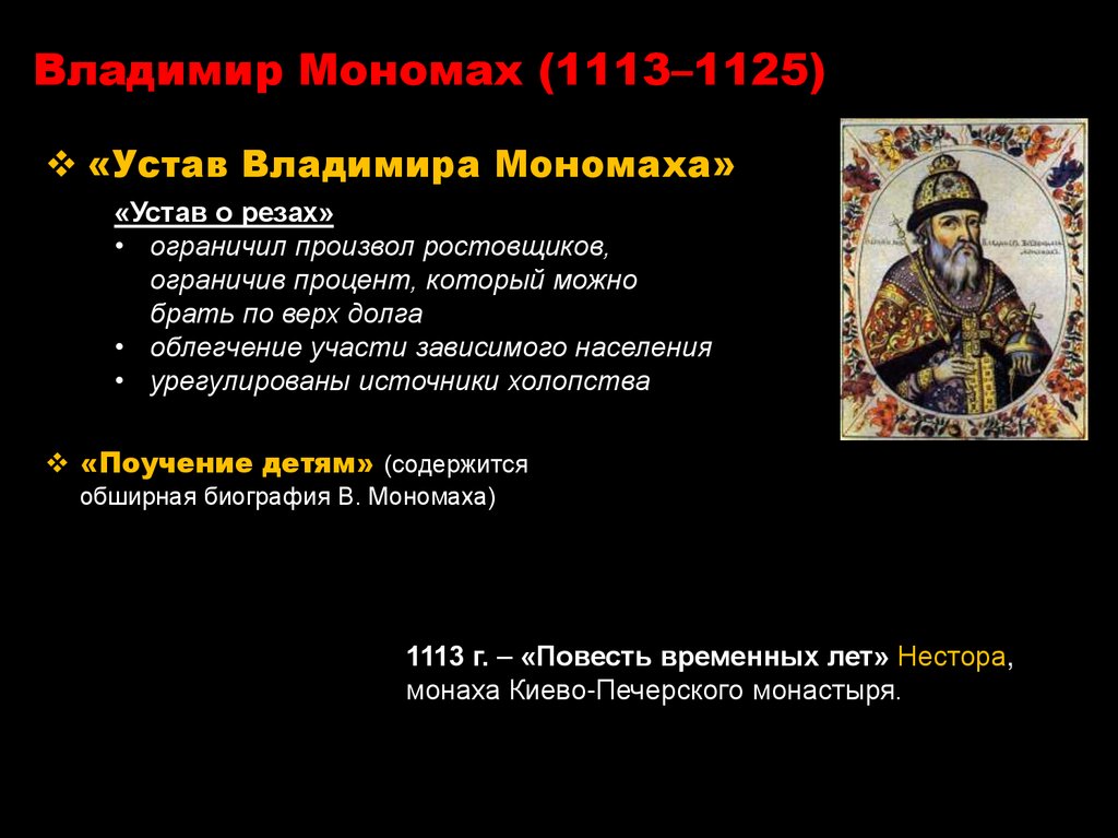Владимир Мономах (1113–1125)«Устав Владимира Мономаха»
