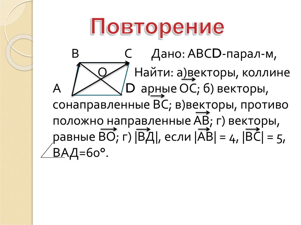 равные ВО; г) |ВД|, если |АВ| = 4, |ВС| = 5,