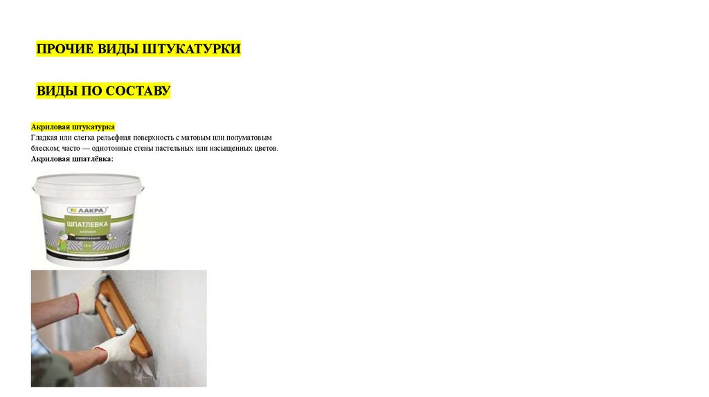 ПРОЧИЕ ВИДЫ ШТУКАТУРКИВИДЫ ПО СОСТАВУ