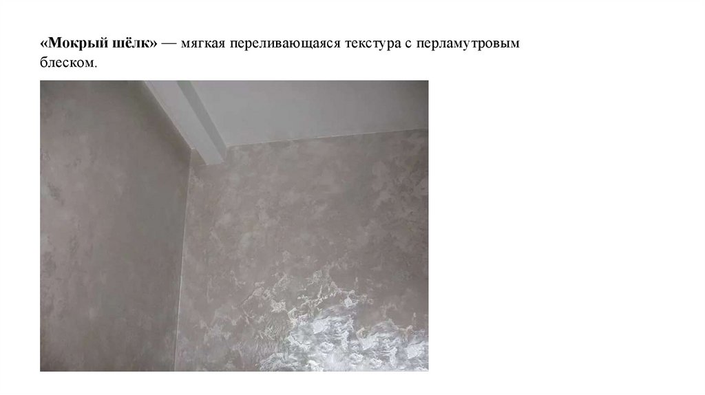 «Мокрый шёлк» — мягкая переливающаяся текстура с перламутровымблеском.