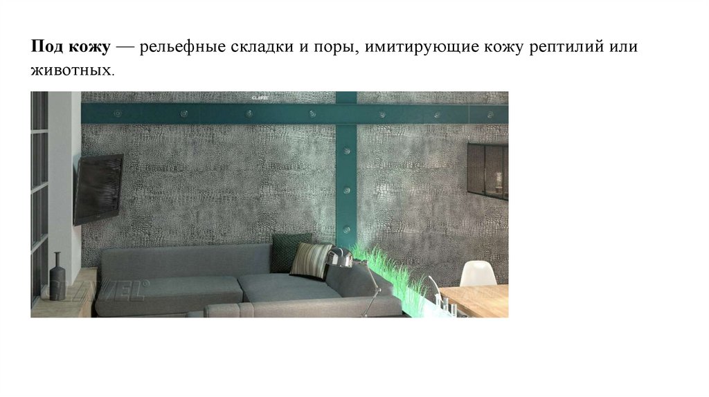 Под кожу — рельефные складки и поры, имитирующие кожу рептилий илиживотных.