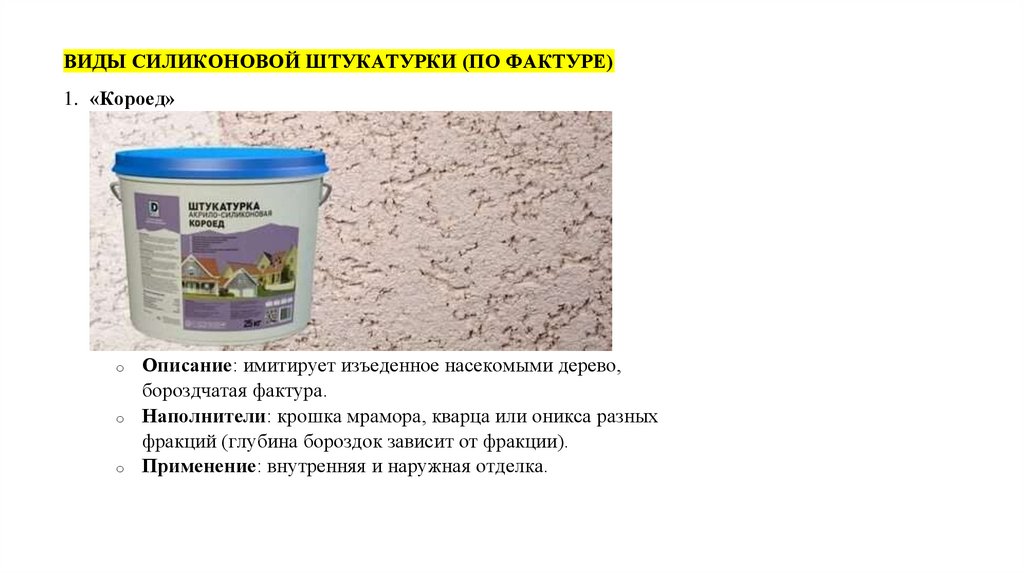 ВИДЫ СИЛИКОНОВОЙ ШТУКАТУРКИ (ПО ФАКТУРЕ)1. «Короед»