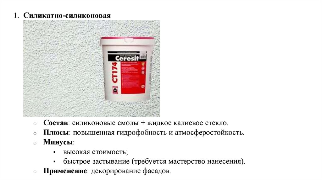 Состав: силиконовые смолы + жидкое калиевое стекло.