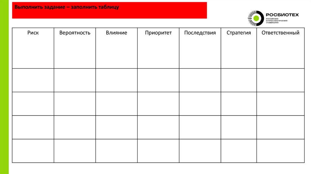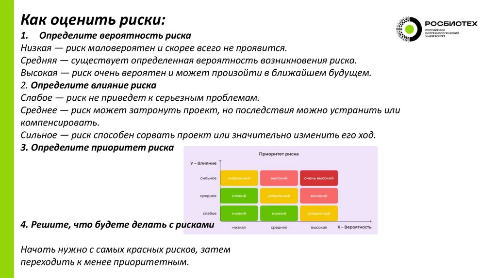 командой. Так вы не потеряете время и быстро приступите к действиям, если риск окажется реальным.