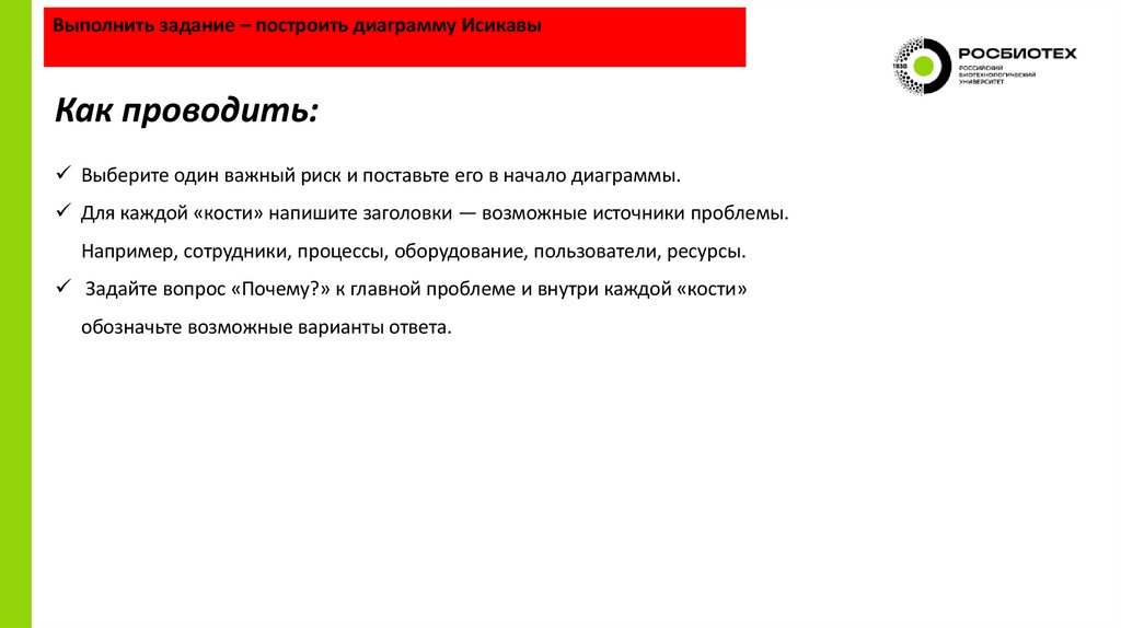Выполнить задание – построить диаграмму ИсикавыКак проводить: