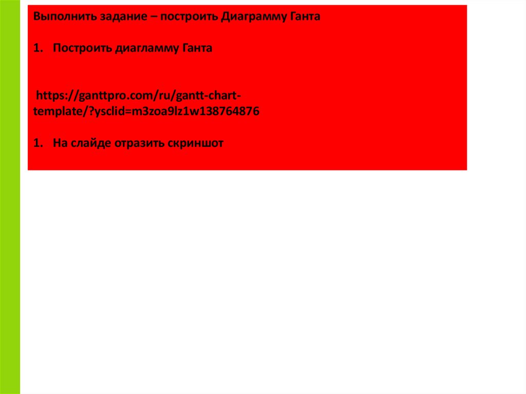 Выполнить задание – построить Диаграмму Ганта1. Построить диагламму Ганта
