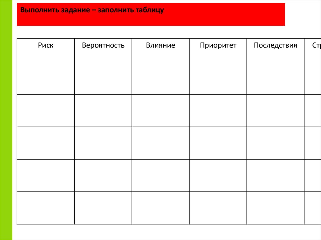 Выберите один важный риск и поставьте его в начало диаграммы.