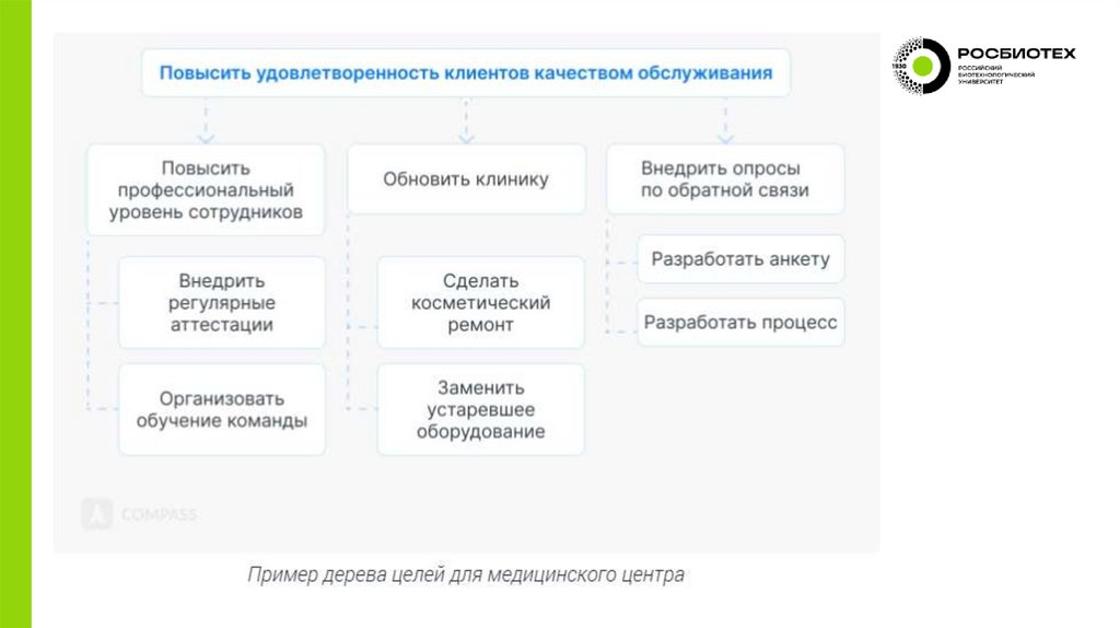 «Дерево целей» — инструмент стратегического планирования и управления, которыйпомогает визуализировать цели и задачи в иерархическом порядке. Визуально