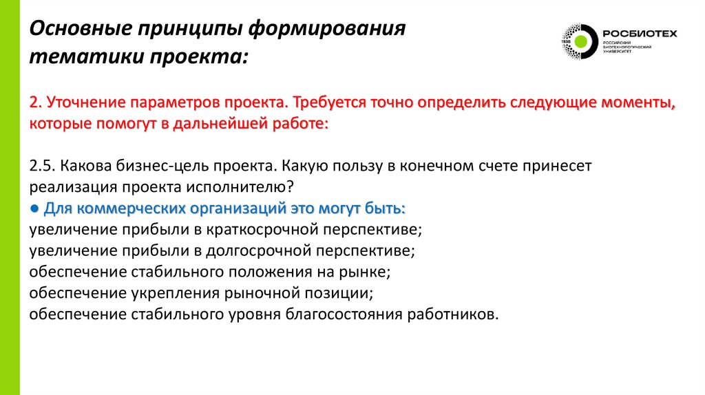 2.5. Какова бизнес-цель проекта. Какую пользу в конечном счете принесет