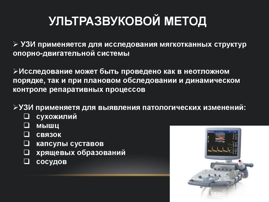УЛЬТРАЗВУКОВОЙ МЕТОДУЗИ применяется для исследования мягкотканных структур