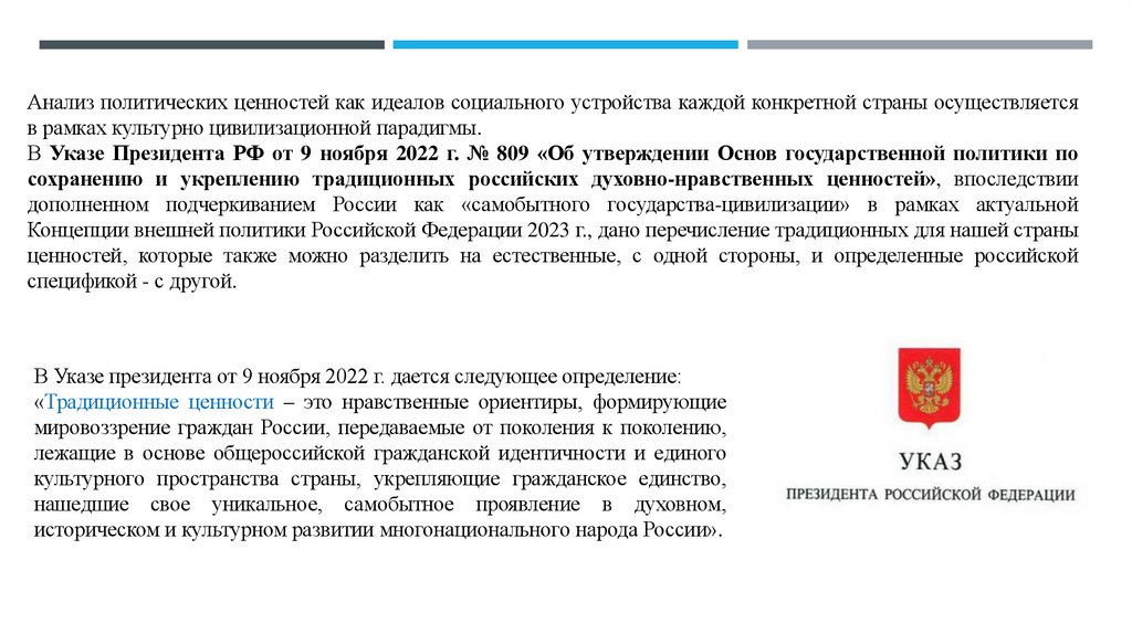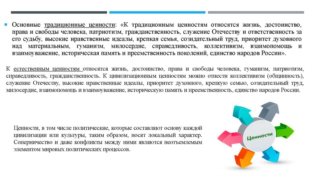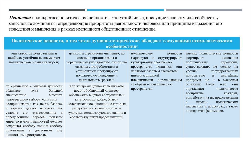Политические ценности, в том числе духовно-исторические, обладают следующими психологическими