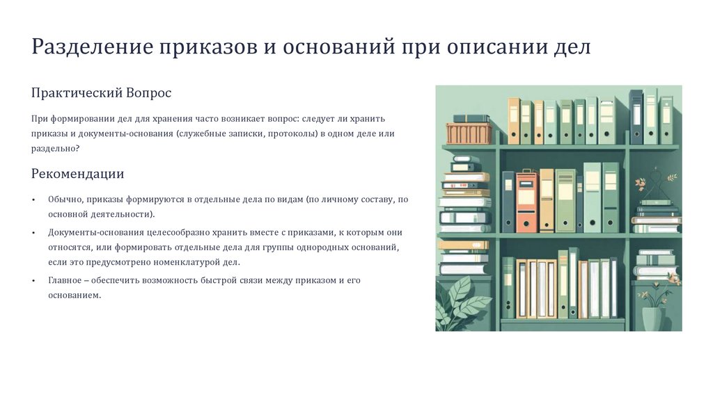 Разделение приказов и оснований при описании делПрактический Вопрос