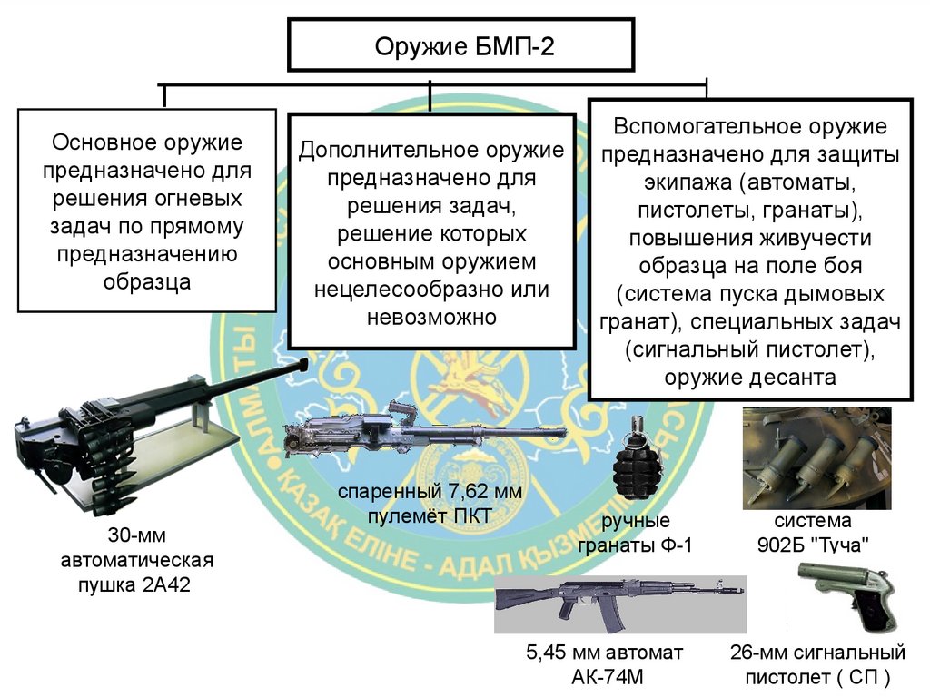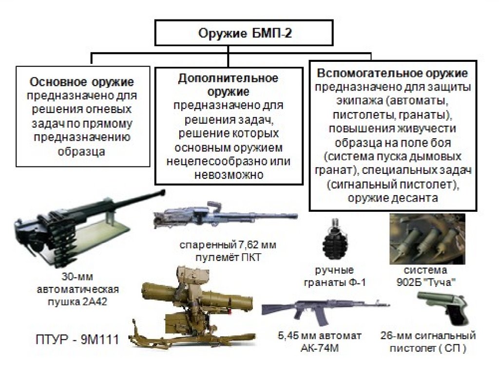 силы, ПТУР на автомобиле), легкобронированных целей с места и с ходу в дневных и