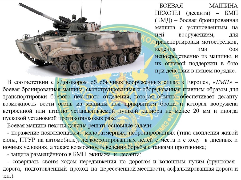 В соответствии с «Договором об обычных вооруженных силах в Европе», «БМП» –