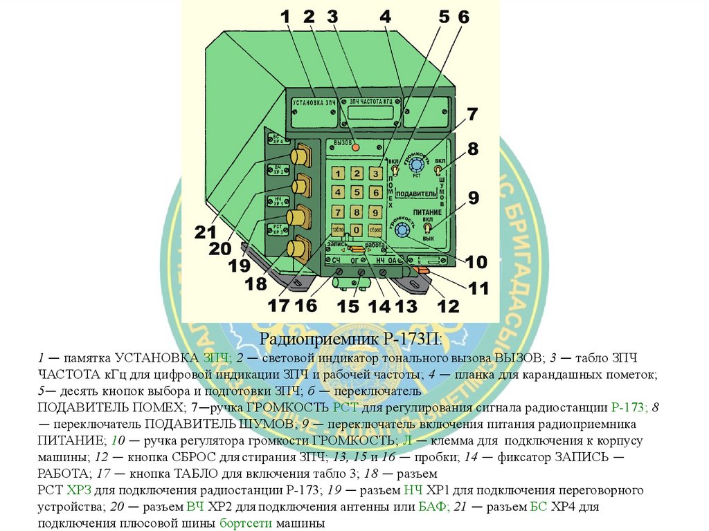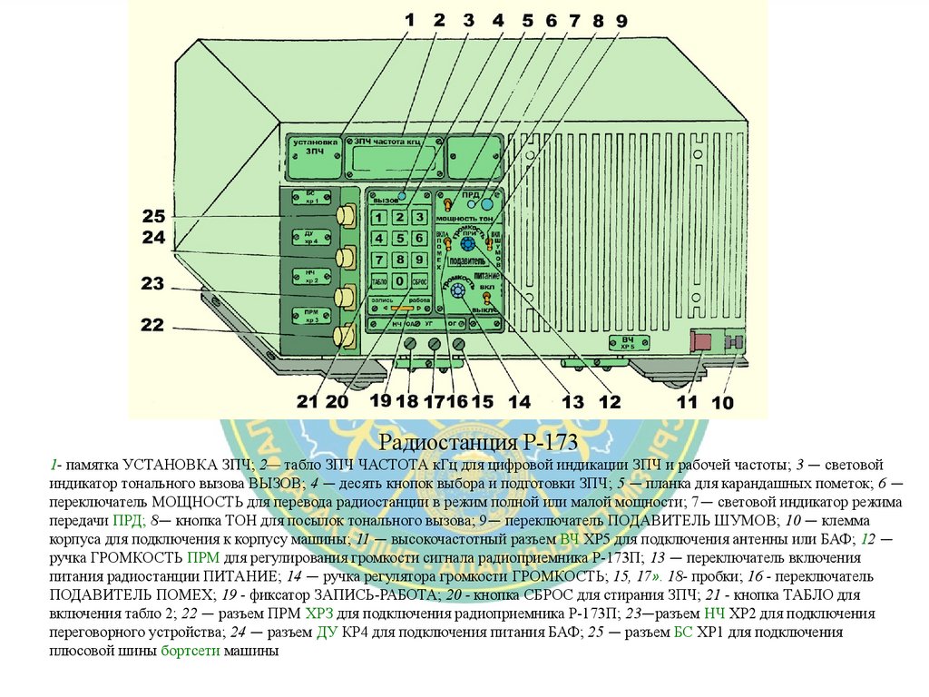 РСТ ХРЗ для подключения радиостанции Р-173; 19 — разъем НЧ ХР1 для подключения переговорного