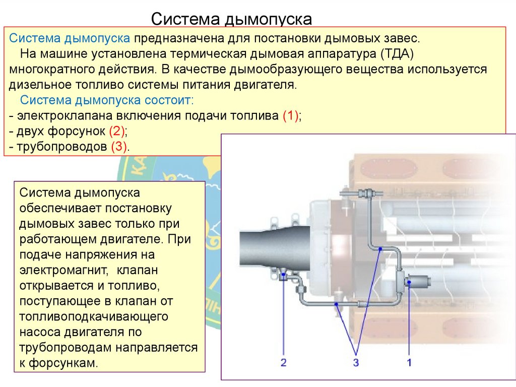 Система дымопускаСистема дымопуска предназначена для постановки дымовых завес.
