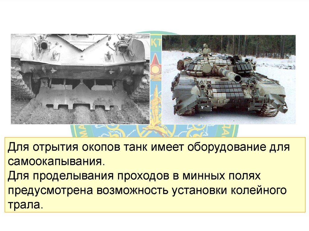 Для отрытия окопов танк имеет оборудование длясамоокапывания.