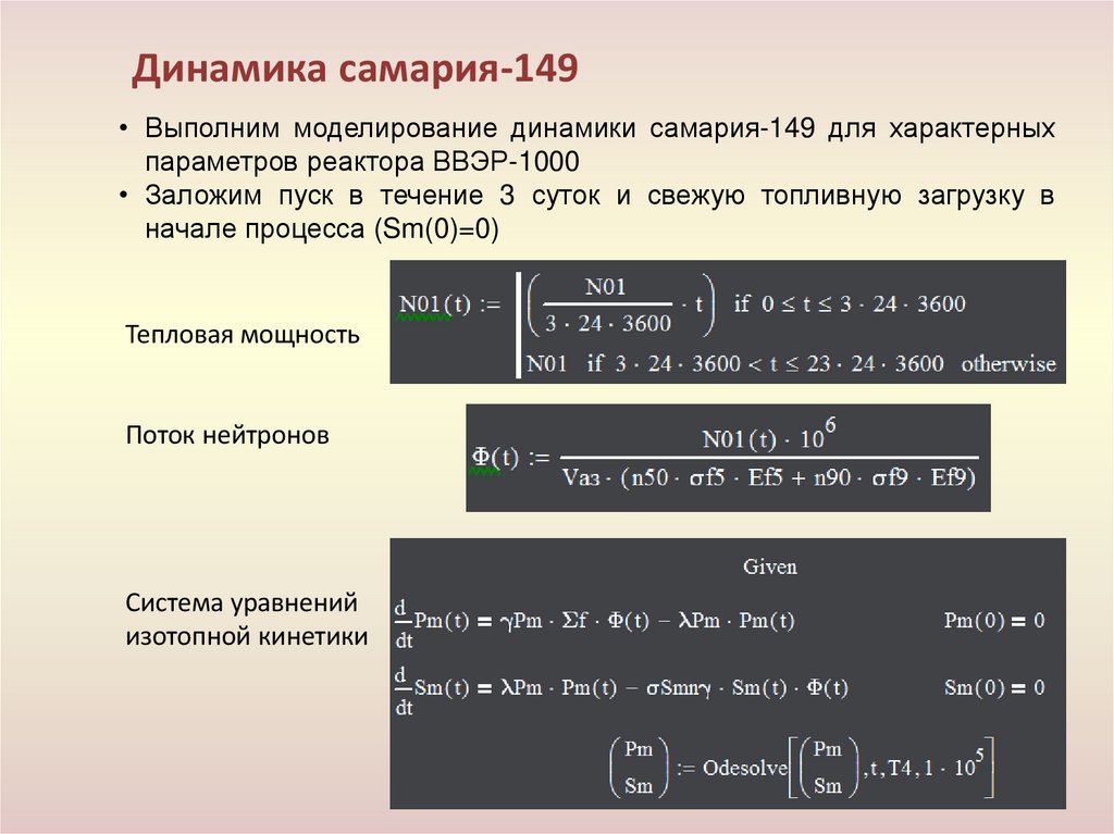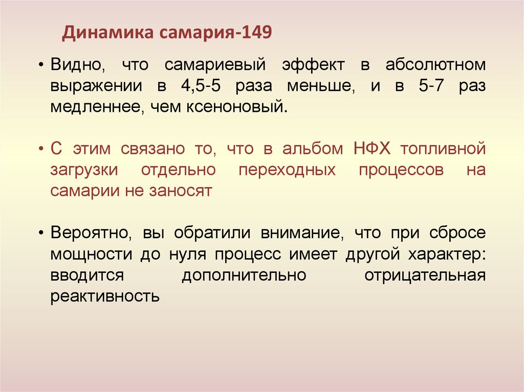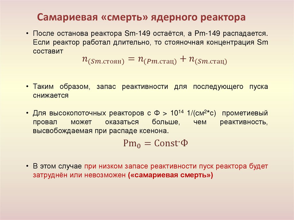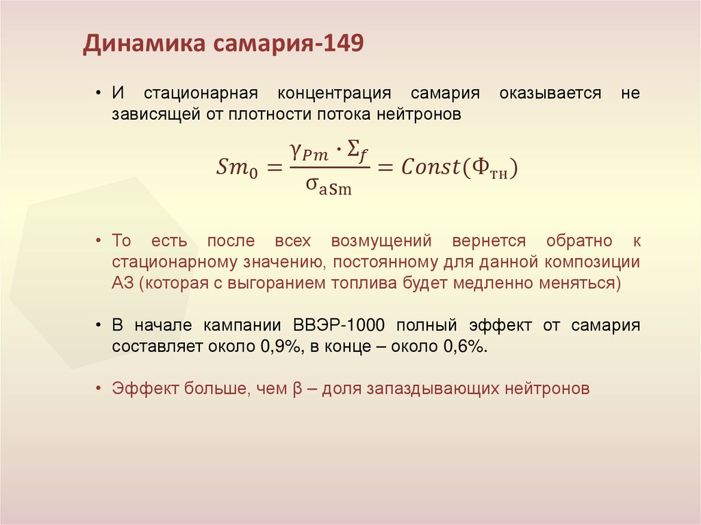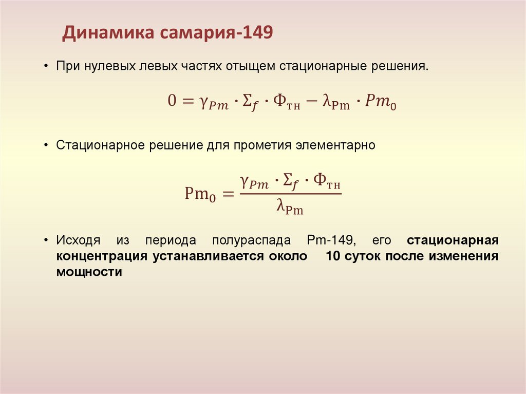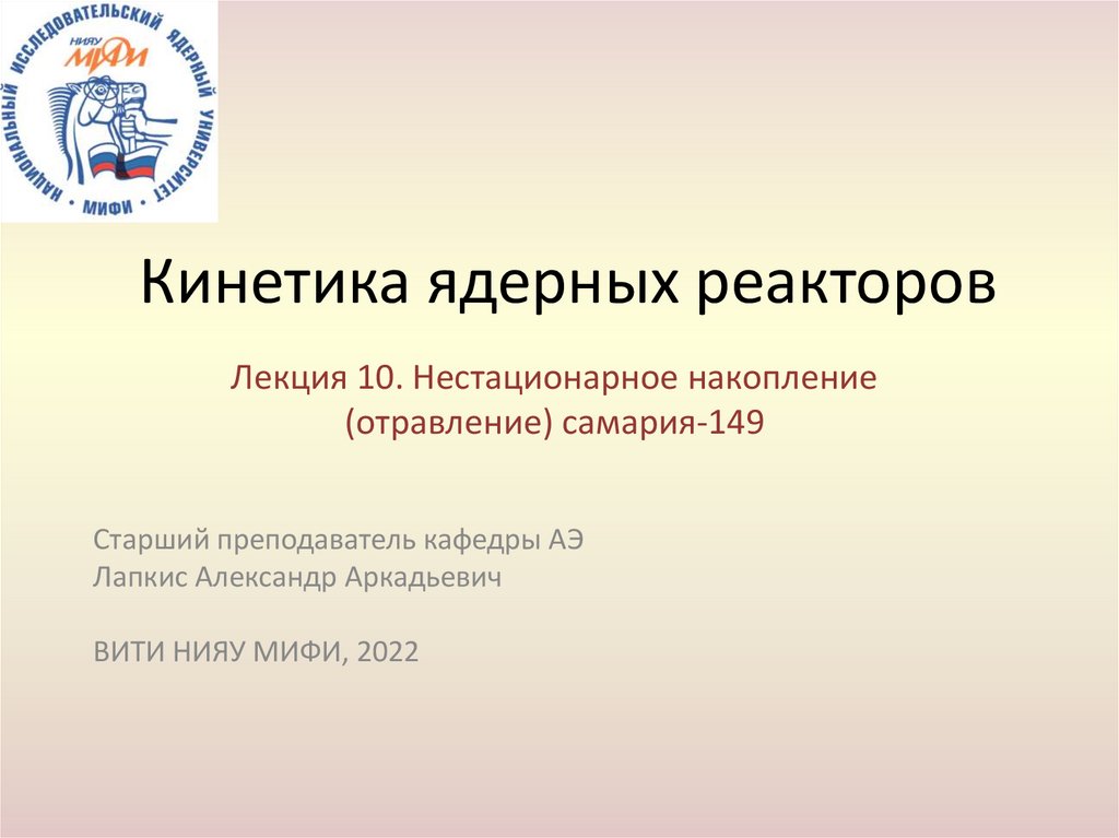 Лекция 10. Нестационарное накопление(отравление) самария-149