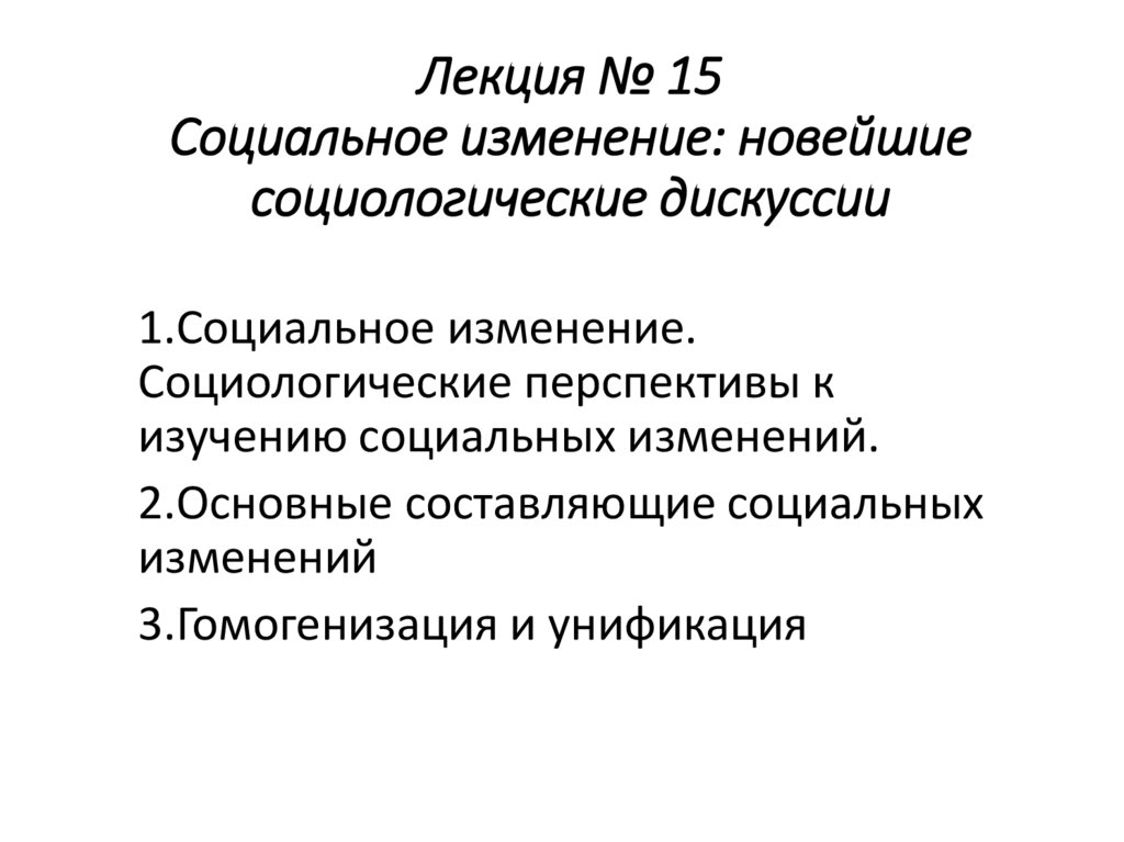 1. Лекция № 15 Социальное изменение: новейшие социологические дискуссии