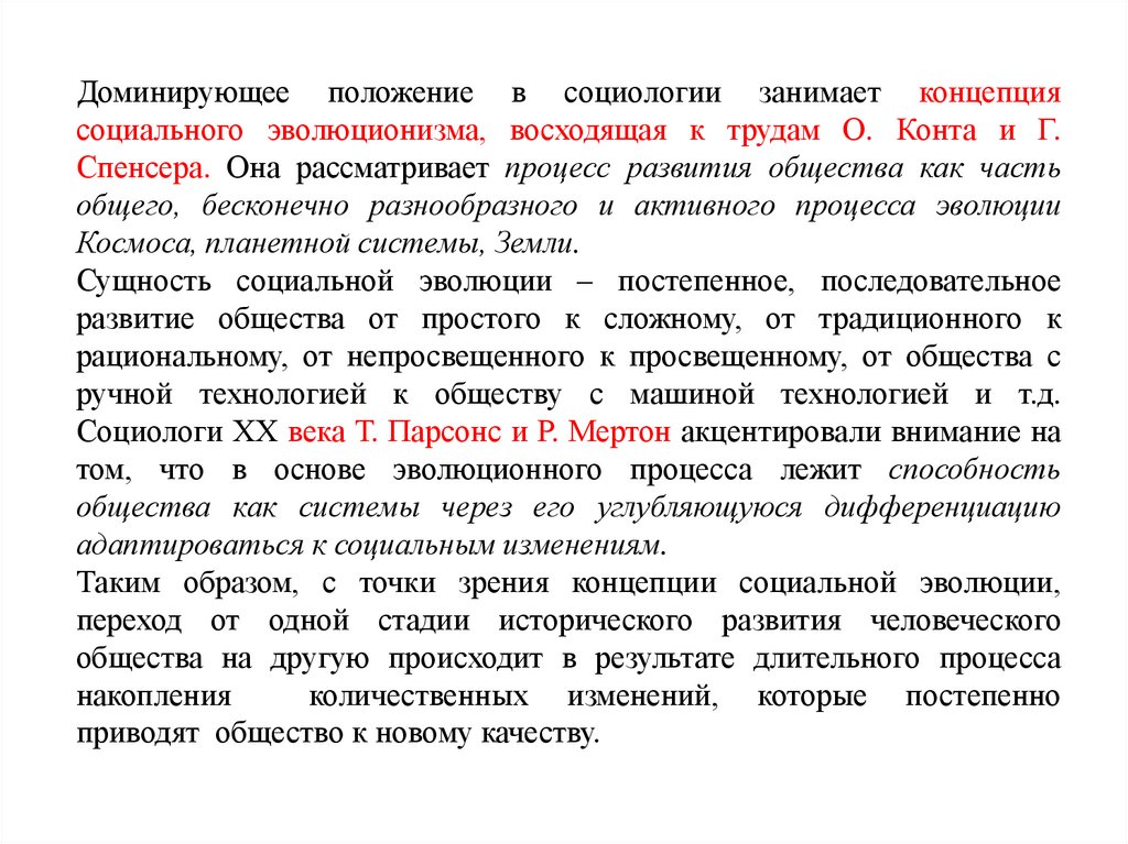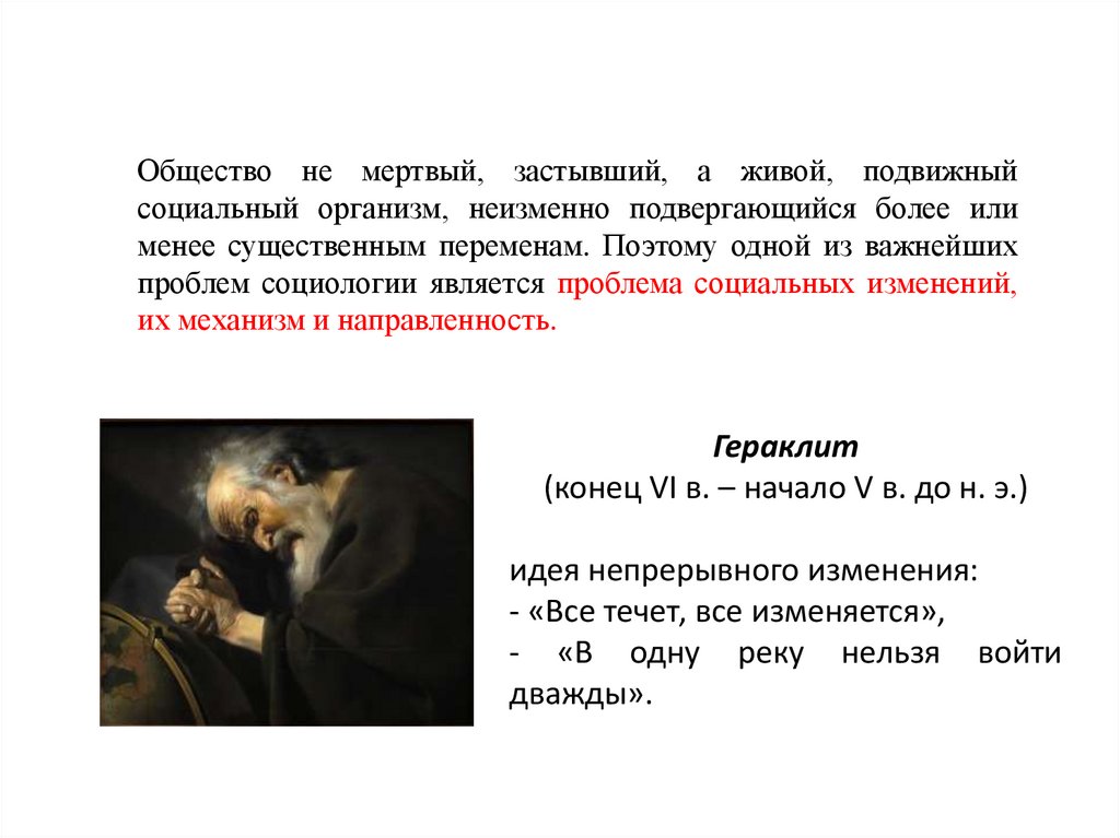 Общество не мертвый, застывший, а живой, подвижныйсоциальный организм, неизменно подвергающийся более или