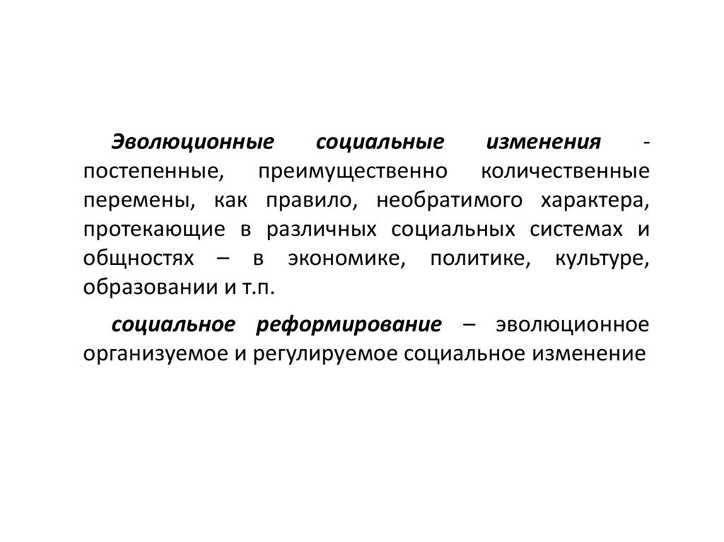 постепенные изменения тех или иных социальных институтов,