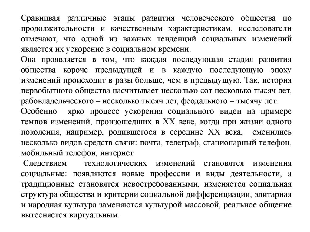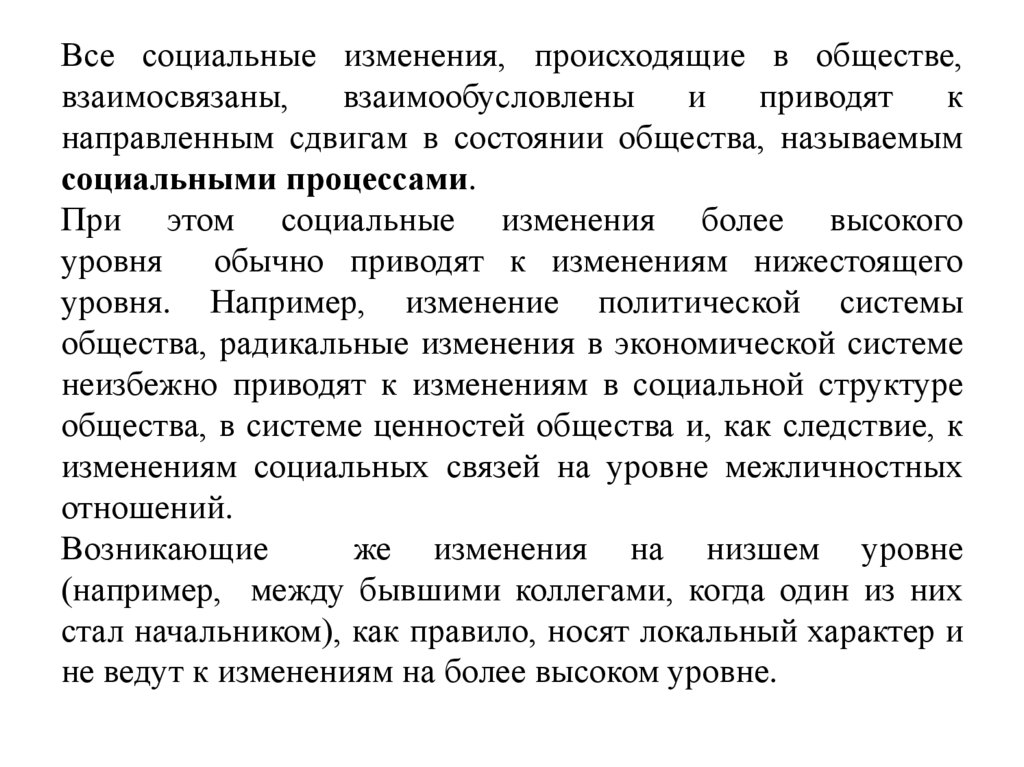 При этом социальные изменения более высокого