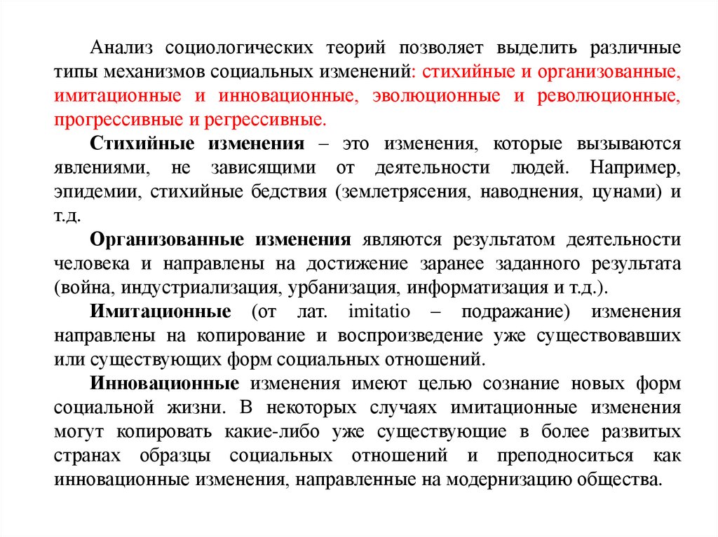 социальных изменений, как целенаправленных, так и