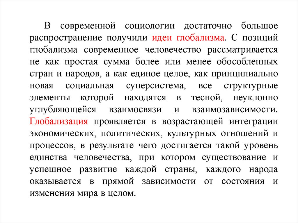 и сопровождающие ее унификация и гомогенезация социальных систем,
