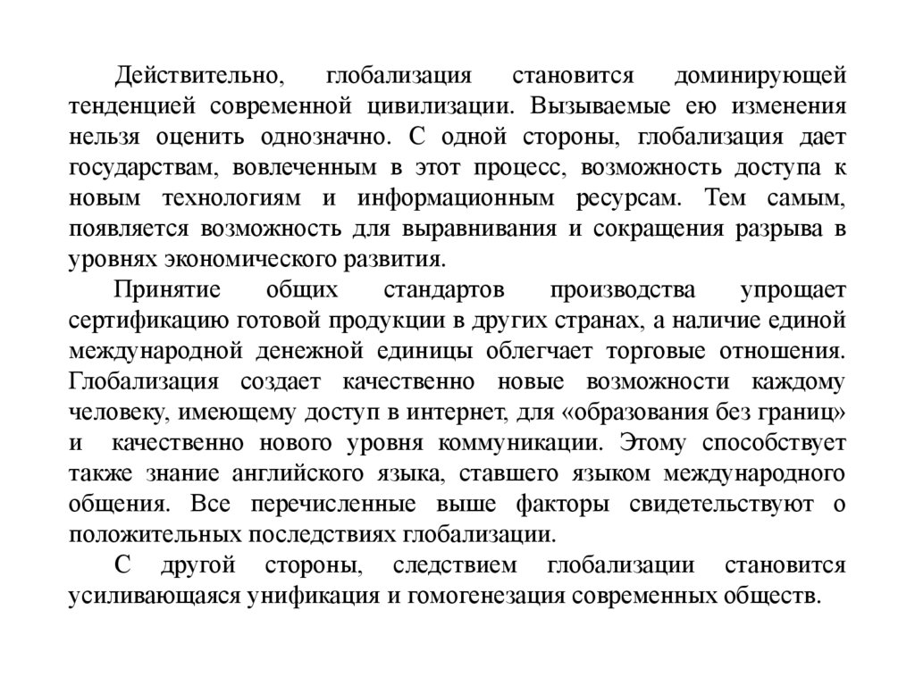 положительных последствиях глобализации.