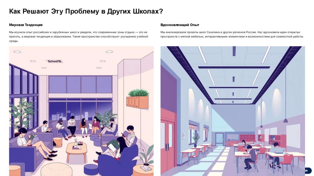 Мы изучили опыт российских и зарубежных школ и увидели, что современные зоны отдыха — это не