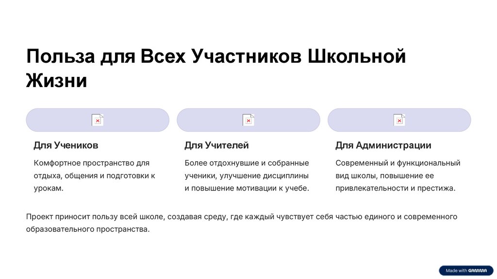 Проект приносит пользу всей школе, создавая среду, где каждый чувствует себя частью единого и современного