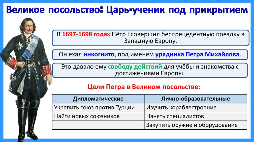 В 1697-1698 годах Пётр I совершил беспрецедентную поездку вЗападную Европу.