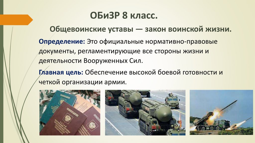 ОБиЗР 8 класс.Общевоинские уставы — закон воинской жизни.