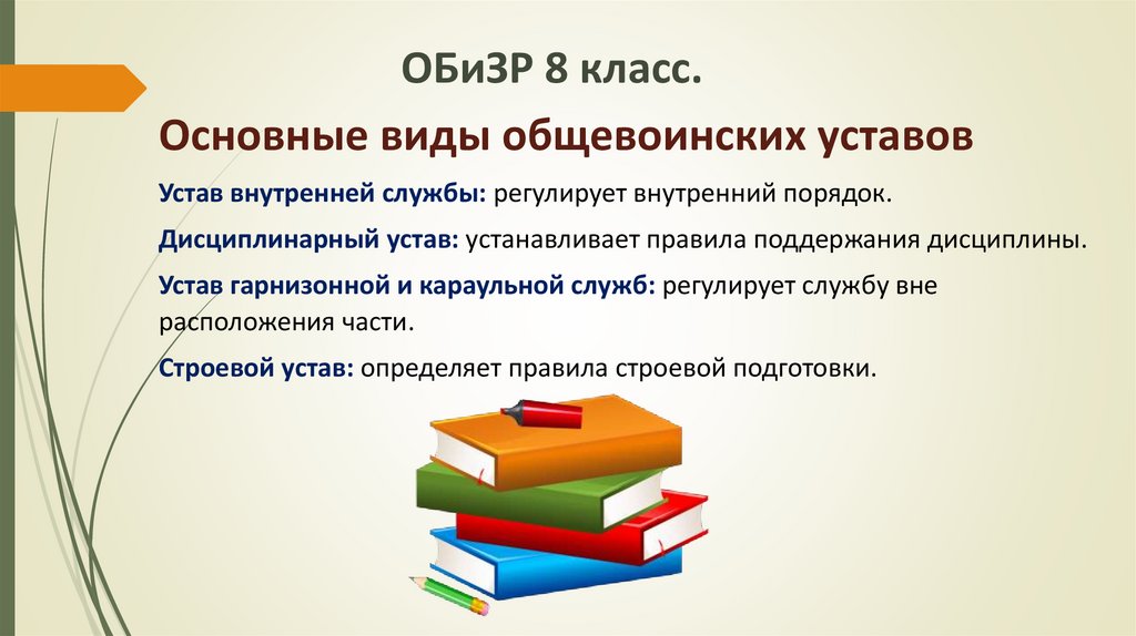 ОБиЗР 8 класс.Основные виды общевоинских уставов