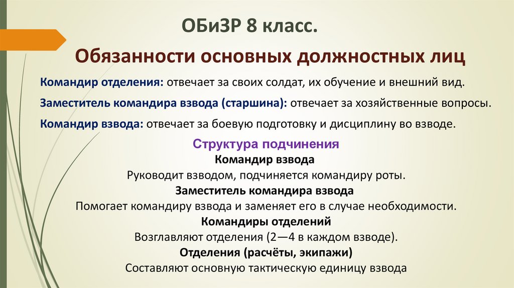 ОБиЗР 8 класс.Обязанности основных должностных лиц