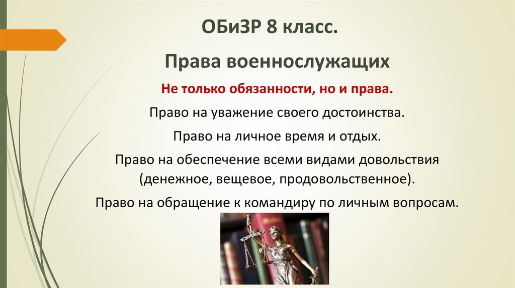 ОБиЗР 8 класс.Статус и обязанности военнослужащего.
