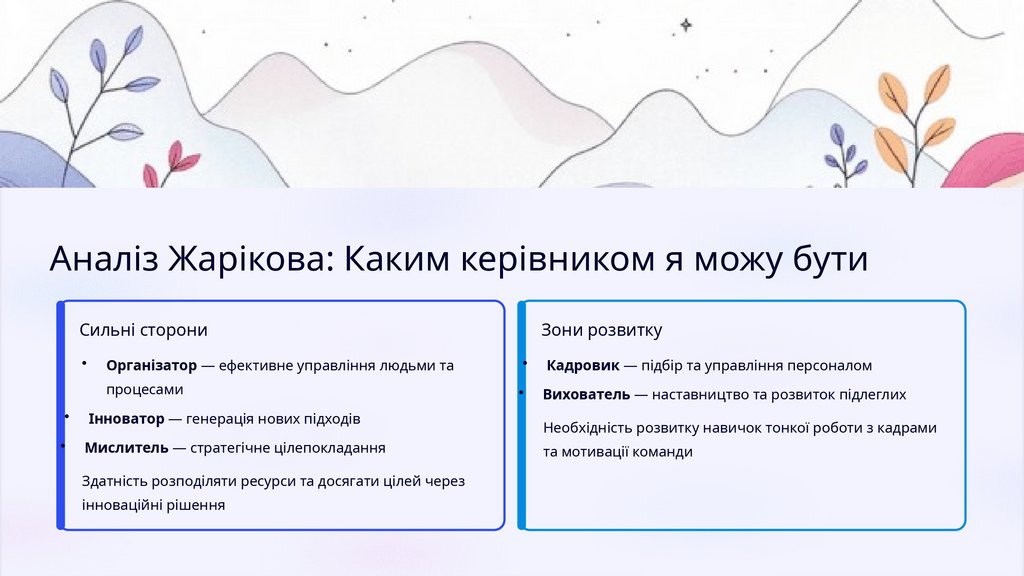 Аналіз Жарікова: Каким керівником я можу бутиСильні сторони